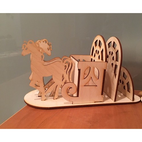 • Wooden pencil case of sleigh